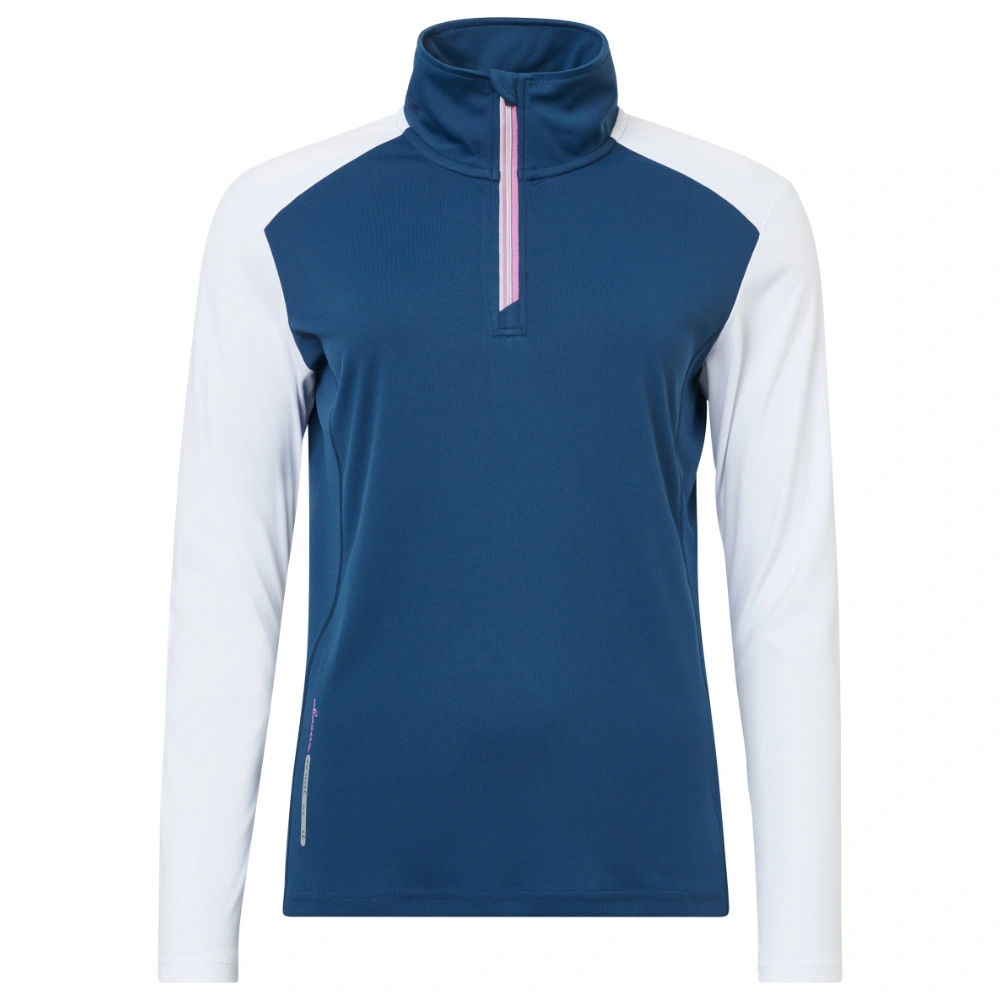 Cypress long sleeve top is made of a very stretchy, lightweight fabric with DryCool effects. The half zipper at front has reflective piping. This top is perfect as a first layer to keep you warm. The sleeves and shoulders are in contrast color. Abacus logos at back neck below collar and at lower front body bottom.