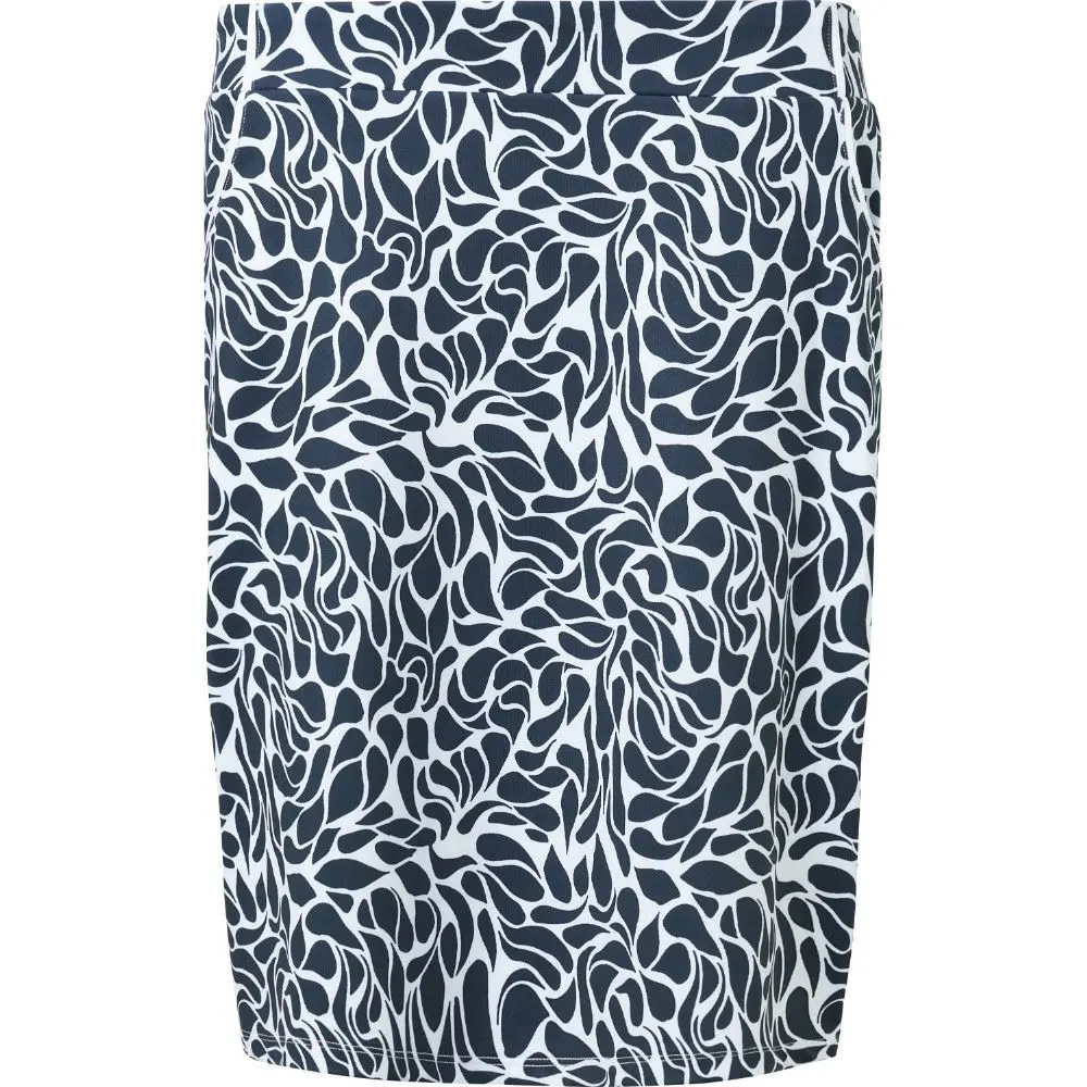 Abacus Ladies Lily Golf Skort is made of a functional fabric that is stretchable and breathable. The fabric also has drycool and wicking effects. Two front pockets and one back pocket. Inner shorts in mesh. Lily skort fits nicely to Lily tops. Abacus logo above right-hand side back pocket. Skort length is 50 cm