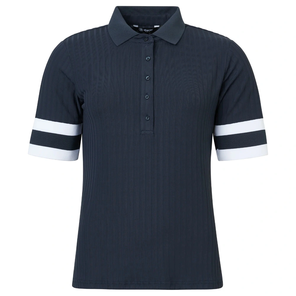 Pebble half sleeve is made of a soft and stretchable material with DryCool and breathable functions. It is knitted in a striped structure with an elegant shine. Knitted collar and 5 small buttons in placket. Sleeve cuffs are knitted with wide contrast stripes. Abacus logo at back below collar.