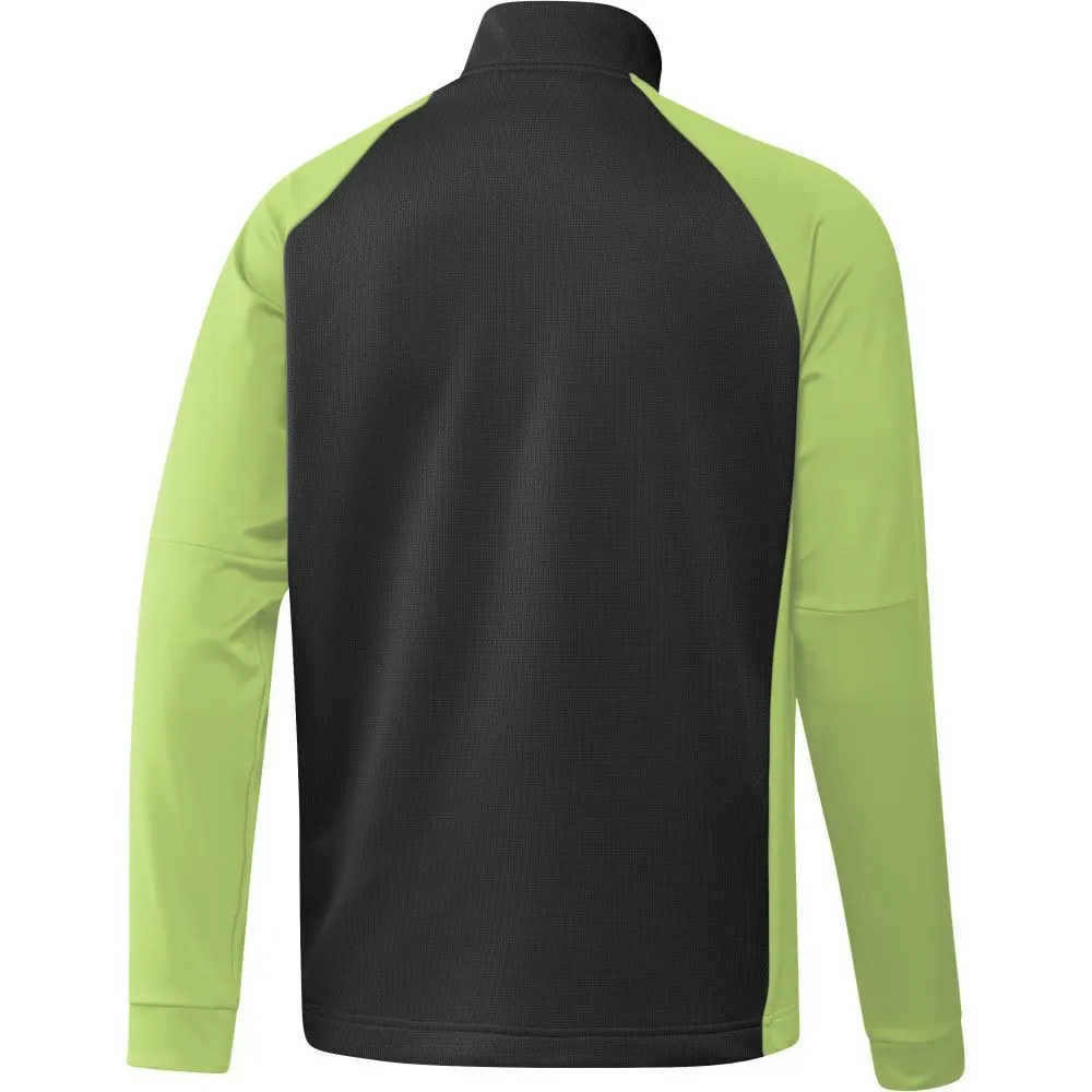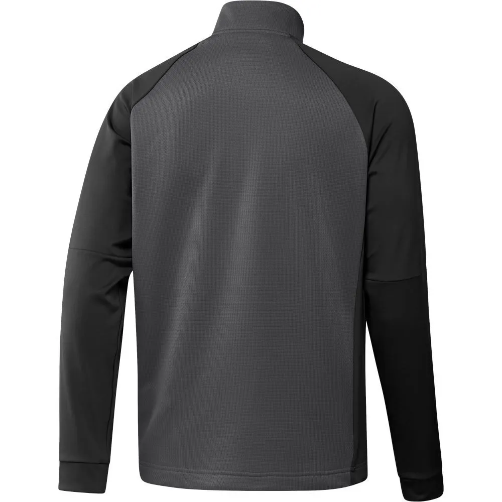 “For cool-weather rounds, layer up in this adidas golf pullover. Midweight mesh in the front provides ventilated warmth while the sleeves offer extra stretch for a full range of motion. A drawcord on the hem lets you seal out the chill. Made with a series of recycled materials, and at least 60% recycled content, this product represents just one of our solutions to help end plastic waste.”