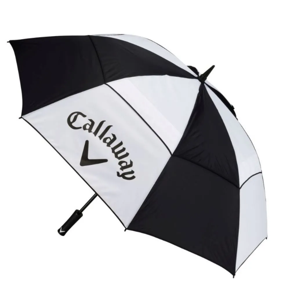 Clean Double Canopy 60″ Umbrella from Callaway will keep you dry from those wet-weather days on the green.