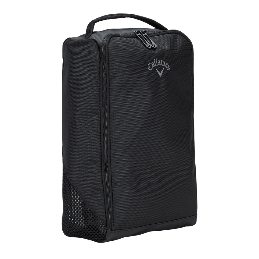 The Callaway Clubhouse Shoe Bag is ideal to take your golf shoes to and from the golf course or driving range. If you want to keep your car clean or after a muddy round of golf these are a must. This shoe bag features a padded grip for easy carry and dual side air vents to clear the shoe bag of any smell.