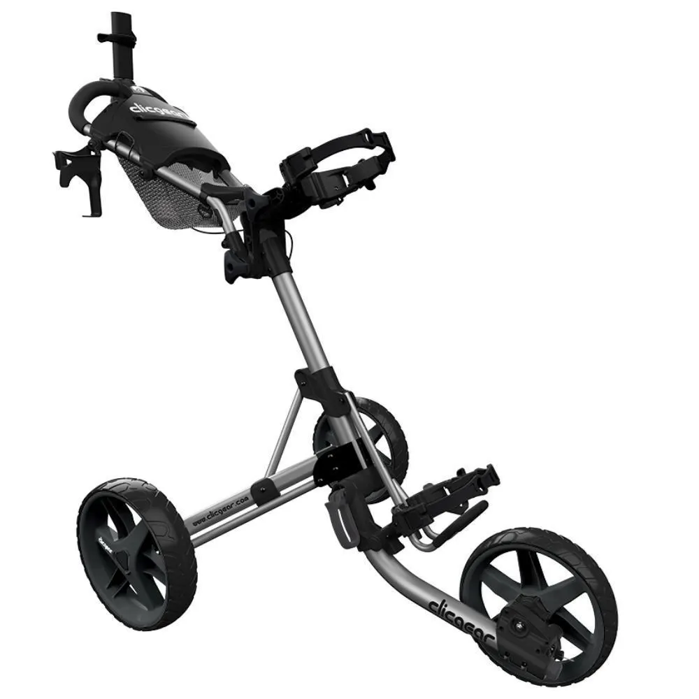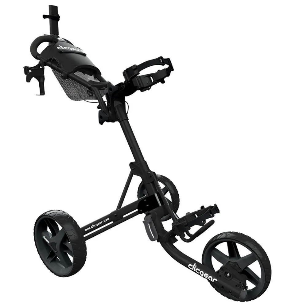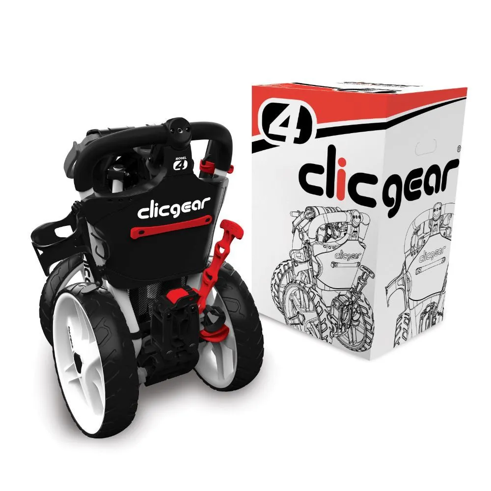 The Clicgear Model 4.0 is the latest update of our very successful three wheel golf pushcart design. We have added several improvements to the original design to make this the best model ever. These include New lid lock, adjustable upper saddle, silicone straps, adjustable front wheel, umbrella tube strap, improved scorecard & pencil holder The trolley still has all the improvements introduced in the Clicgear 3.5+ version, which are: Increased cargo net storage by 80% for even more room. Easy-Clip Bag Strap System that makes it easier to adjust and fit your bag on the cart, no matter the size or type of bag. Improved the umbrella storage clip to prevent any lost Umbrella Tubes. Redesigned Brake System with a new cable anchor pivot assembly that eliminates cable wear and damage. The brake gear and hammer profiles improved to engage better and reduce stress on the cable. Introduction of the Cup Holder Plus which was a more adjustable and lighter cup mount.
