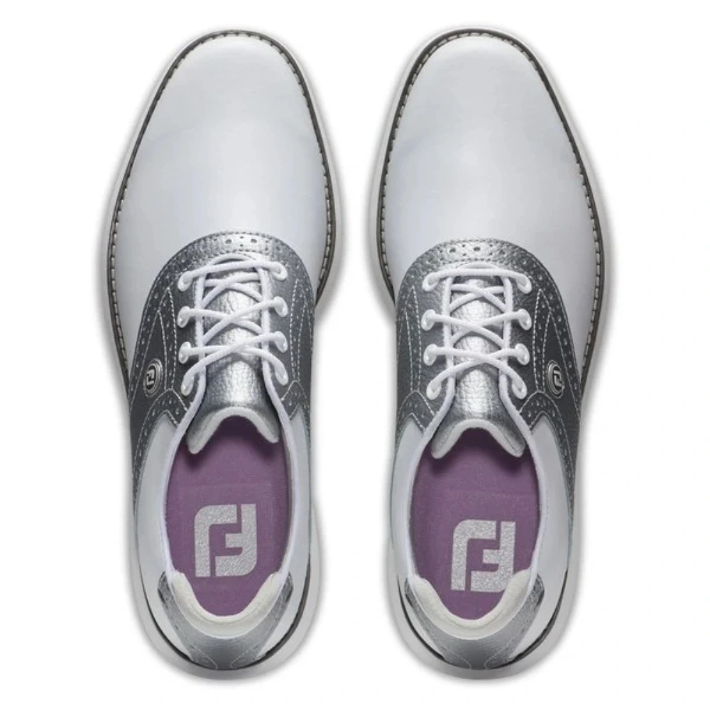 The latest FJ Traditions Spikeless Golf Shoe from FootJoy offers exceptional versatility both on & off the course and casual, classic styling with athletic performance. These women’s FJ Traditions offer complete traction and can be easily maintained round after round. Lightweight comfort and super-cushioned foam deliver an incredibly flexible and comfortable ride.