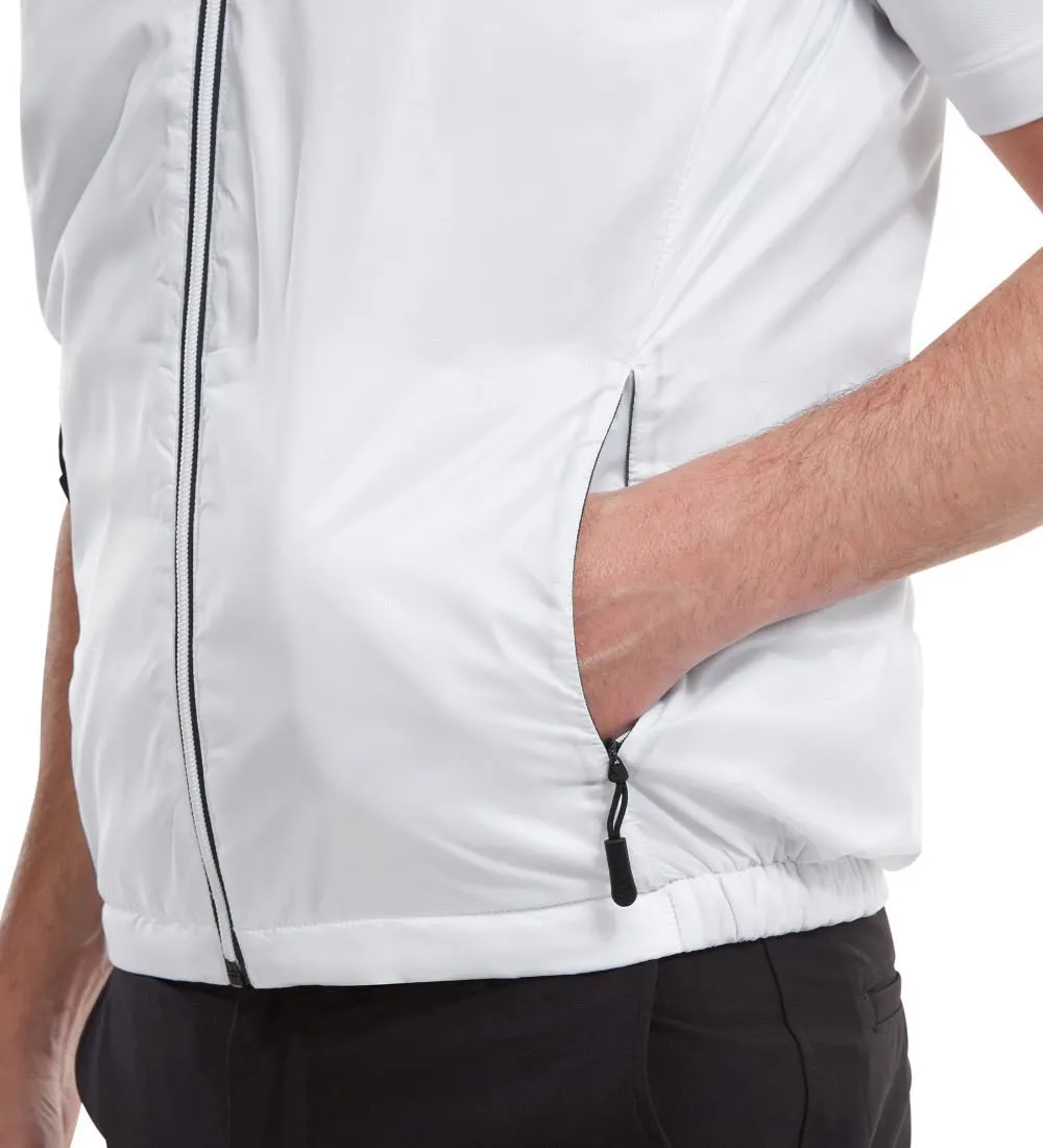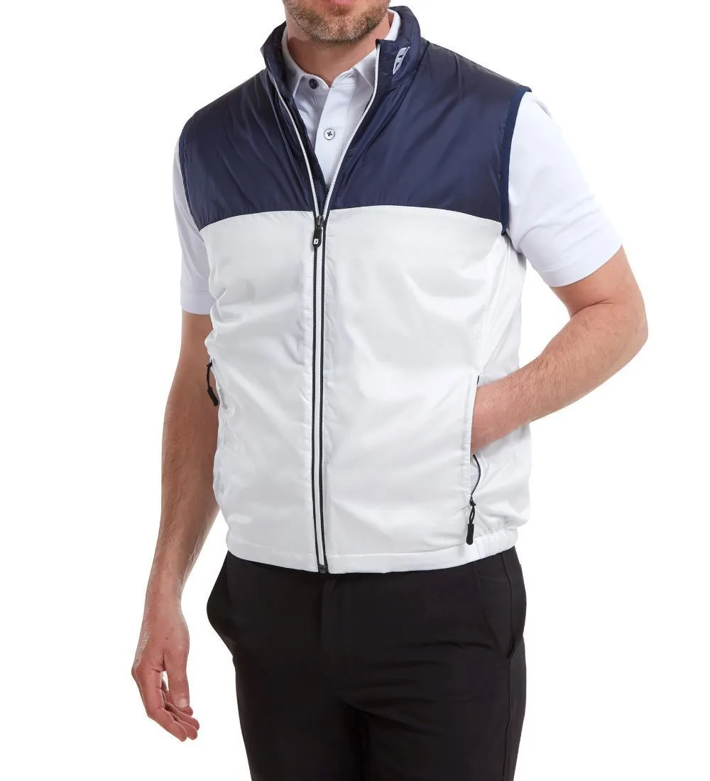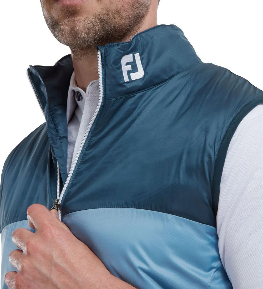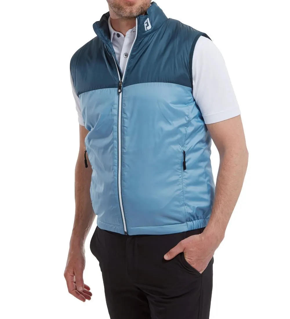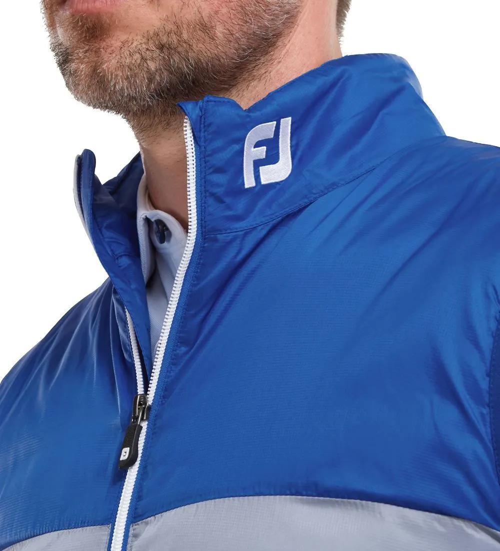 Woven ripstop outer shell with sweater knit side panels. Lightweight polyester insulated panels ensure body heat retention in cooler conditions. DWR finish on woven panels for added rain protection. Zipper hand pockets for secure storage. Elastic knit binding on armhole and waist provides a secure, comfortable fit. Contrast zippers and FJ logo’s on collar and rear yoke