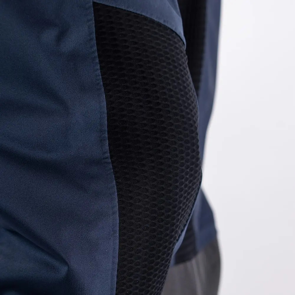 Premium full-zip waterproof golf jacket. The shoulders and lower back are reinforced with extremely durable TECHSTEELâ„¢ fabric that easily handles the abrasion when carrying the golf bag. The GORE-TEX super stretch fabric is placed at center back and elbows to increase the comfort even more. Features include carbon printed zippers, chest tabs and shapes sleeves. The neatly detailed print as front and back shoulders give the jacket its exclusive look.
