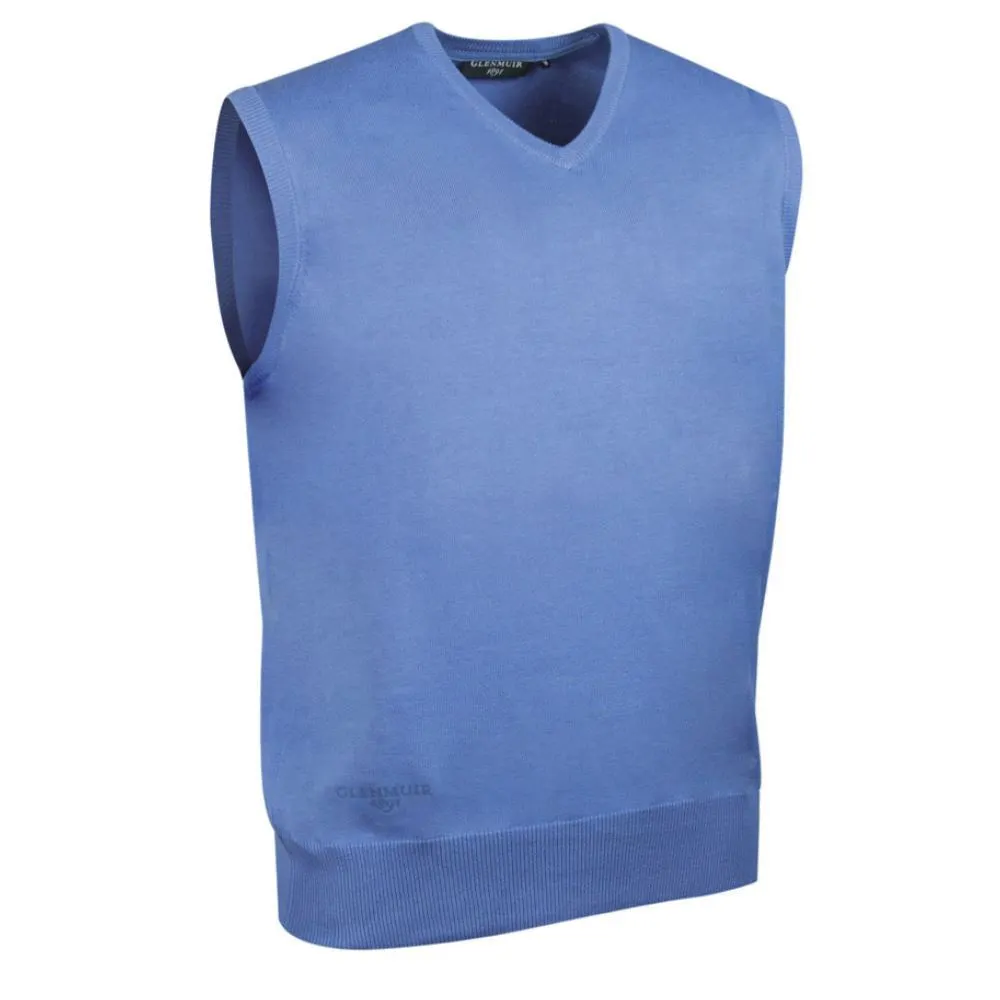 Always a great between-seasons choice, a slipover takes care of the chill out there on the course without being over-warm or bulky. This sleeveless men’s sweater keeps your arms fully unhindered for a full swing and fits comfortably under a jacket without excess bulk. The v neck Thornton golf slipover design is well-proportioned for a smart fit and comes in several colours, knitted to a fine gauge from the finest combed cotton for a smooth, soft feel. Natural cotton is a comfortable, breathable, and sustainable fibre suitable for year-round wear.