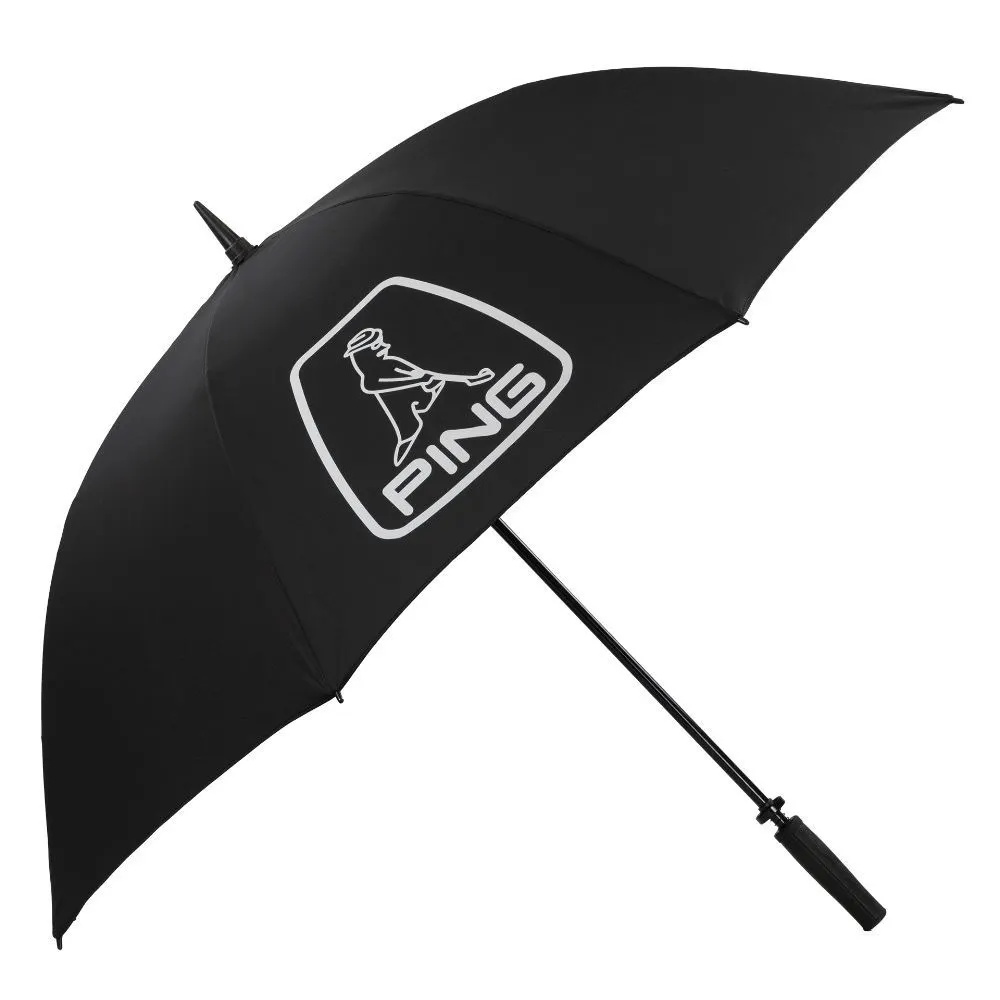 The PING Single Canopy Golf Umbrella featuring a stylish design including a simple release deployment.