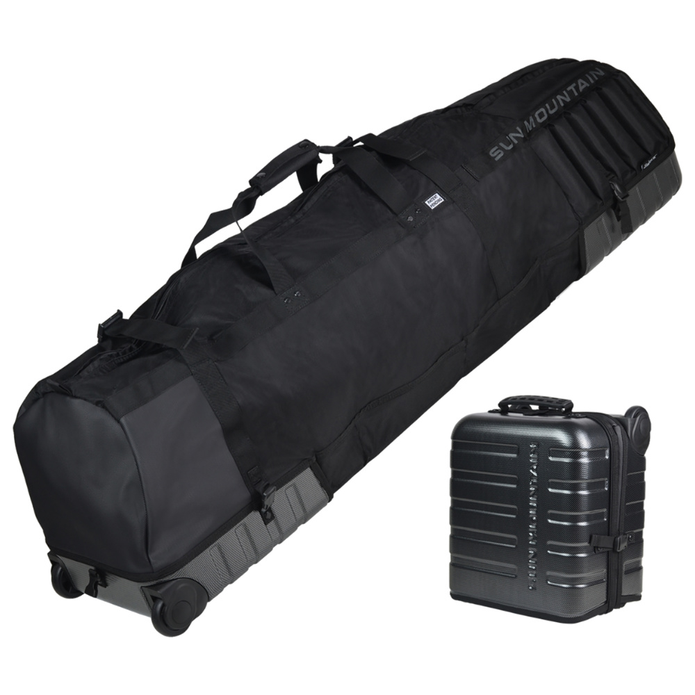 This practical and durable golf travel cover from Sun Mountain folds into a compact, hard shell cube case for easy storage & transportation when not in use.