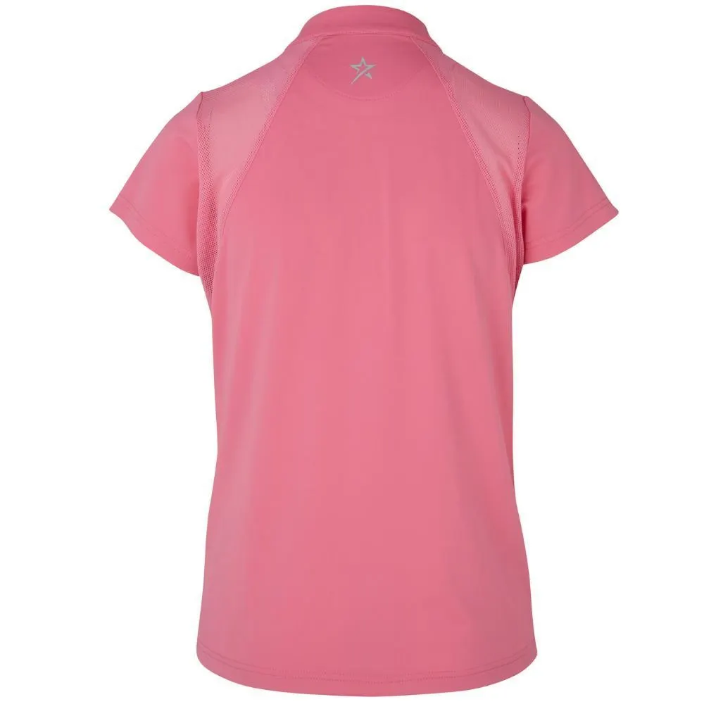 Swing Out Sister knows how to design wardrobe essentials and this cap sleeve polo is one of them. Designed in a simple, slim fit with mesh panels to the shoulders and running down the sides of the body add a contemporary detail and provide extra ventilation. The polo is so instantly wearable, with a soft, lightweight feel against the skin. The four-way stretch, performance fabric is breathable, moisture-wicking, and has inherent sun protection to SPF30 so you can play in comfort all day.