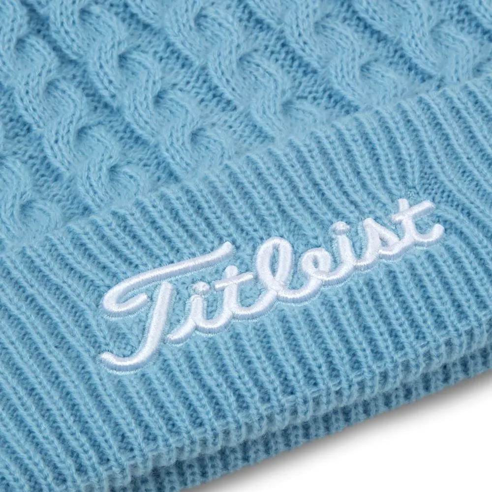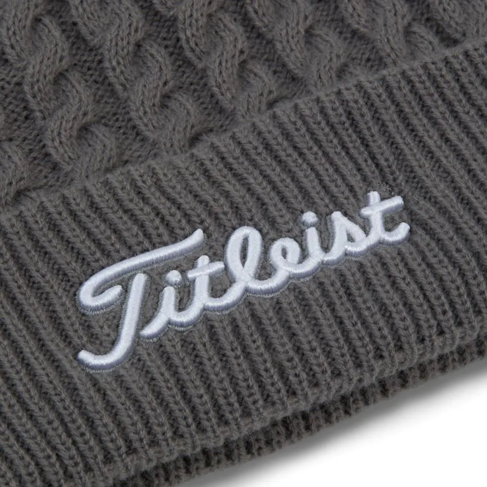 Stay warm in style. Crafted with a trendy, cable knit crown and body, along with a classic pom top, the Cable Knit Pom Pom beanie’s 100% acrylic yarn delivers warmth and comfort for cooler conditions.