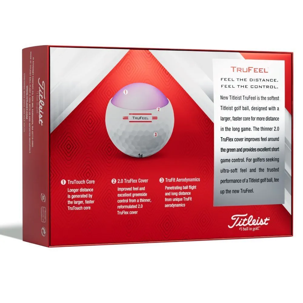 Titleist® TruFeel™ is the softest Titleist golf ball, now reimagined with a TruTouch core and TruFit aerodynamics for more distance in your long game. The proprietary TruFlex cover gives you excellent control into and around the green.