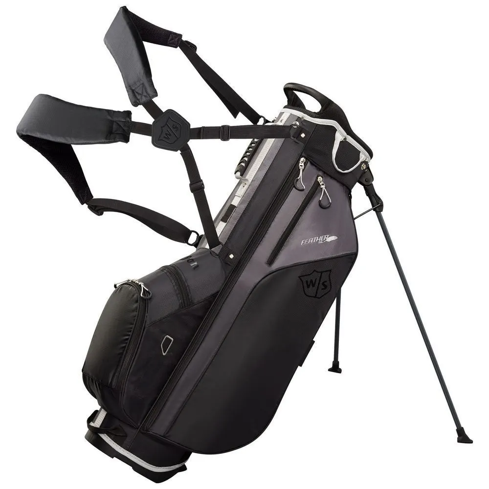 The Wilson Feather Carry Stand Bag provides everything you need in a functional golf bag, while also managing to be incredibly lightweight. The Feather Carry Bag weighs in at 1.72KG and the 2-in-1 self-balancing strap system makes carrying it a breeze. Fitted with a 5-way top with 2 full-length dividers keep your clubs safe and organized. It has 5 highly versatile pockets that hold all your on-course gear needs including 1 full-length side pocket, 1 velour-lined valuables pocket, 1 large accessory pocket, 1 mid-size ball and tee pocket, 1 large open pocket for beverages or a range finder.